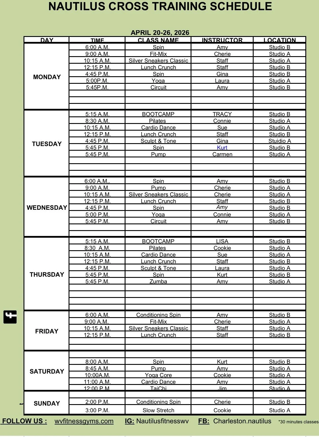 Offered daily! Need a quick workout over your lunch break. These 30-minute classes are offered every day with a set training schedule.